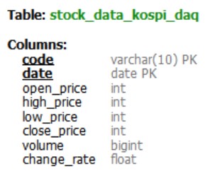 - 또한 지정된 기한(11년)이 지난 주가 데이터는 삭제해 줍니다.