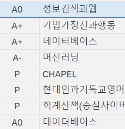 작년부터 여러 CS관련 책들과 강의들을 보며 열심히 공부한 것을 보상받을 수 있었습니다. 올해 모든 과목들이 A가 나왔네요. 4만 넘어도 매우 만족하던 저인데 1학기에 4.35, 2학기에 4.3을 받았습니다.
