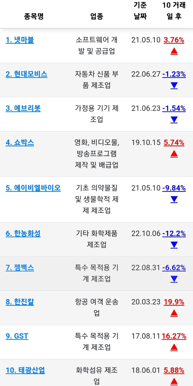 - 비슷한 차트들의 평균 하락이 가장 큰 종목