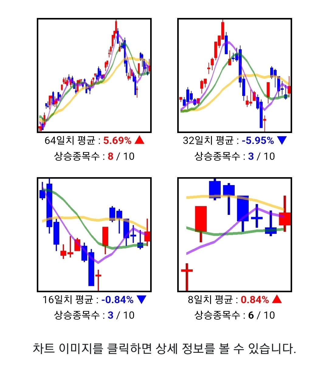 - 8, 16, 32, 64일치의 장/단기적 관점에서 본 비슷한 차트들을 기반으로 차트를 평가합니다.