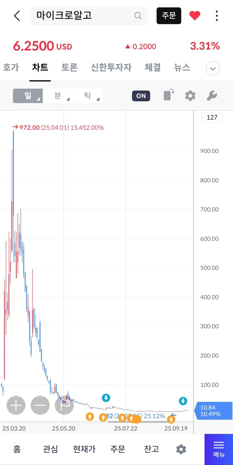 하지만 그래도 너무 위험하기 때문에, 진짜 살 것이 없을 때만 고려하며, 매수를 하기로 결정해도 시드의 1%부터 매수시작, -15~20% 유지 정도로 다른 종목을 매매할 때와는 훨씬 조심스럽게 접근합니다. 거래정지만 아니길 빌면서