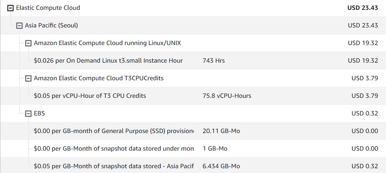 제 프로젝트는 사용자가 특정 차트를 고르면, 코스피 코스닥 전 종목의 과거(5년) 차트들을 모두 탐색하여 가장 유사한 차트 10개 정도를 골라 사용자에게 보여주는 것이 목표입니다. 비슷한 차트 검색기 비슷한 차트 검색기전 종목의 최근 10년간 모든 차트를 탐색합니다. 내 종목의 차트는 과연 상승하는 차트일까요?www.similarchart.com 정확히 어떤 서비스에서 비용이 발생할까저는 2023년 10월부터 AWS를 사용하여 제 웹프로젝트를 배포하고 있습니다. 물론 프로젝트가 완성되어 배포한 건 아니고 아직 개발 단계와 테스트 단계입니다. 다행인 부분은 제 프로젝트가 생각했던 범위 내의 비용에서 실행이 일단 된다는 점입니다. 하지만 또 모르죠. 실제 완성해서 배포했더니 사용자가 10명만 동시에 사용..